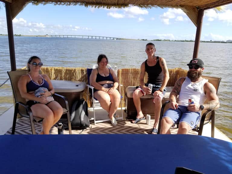 Tiki Cruises offers captained boat tour charters for up to six people near Cocoa Beach and Merritt Island, Florida. Enjoy dolphins, manatees, and nature while snacking, grilling, or drinking (BYOB). Other popular activities include swimming, games, and relaxing in a comfortable double hammock.